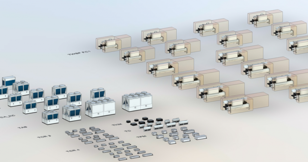 Для сложных объектов, особенно с плотной застройкой инженерных систем, BIM-моделирование становится критичным. На chiller-bim.ru доступны 3D-модели чиллеров, выносных конденсаторов и драйкулеров в форматах Revit, IFC, STEP. Это позволяет: