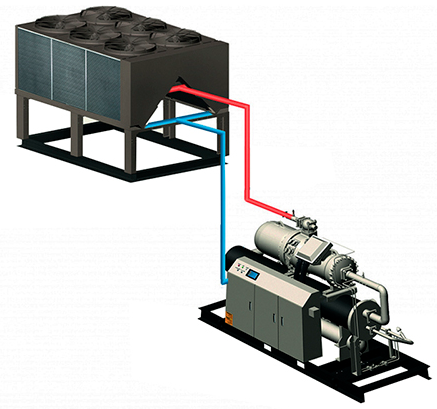 Преимущество чиллера: он работает как тепловой насос, а зимой может использоваться для обогрева при подключении к буферным бакам или геотермальным контурам.