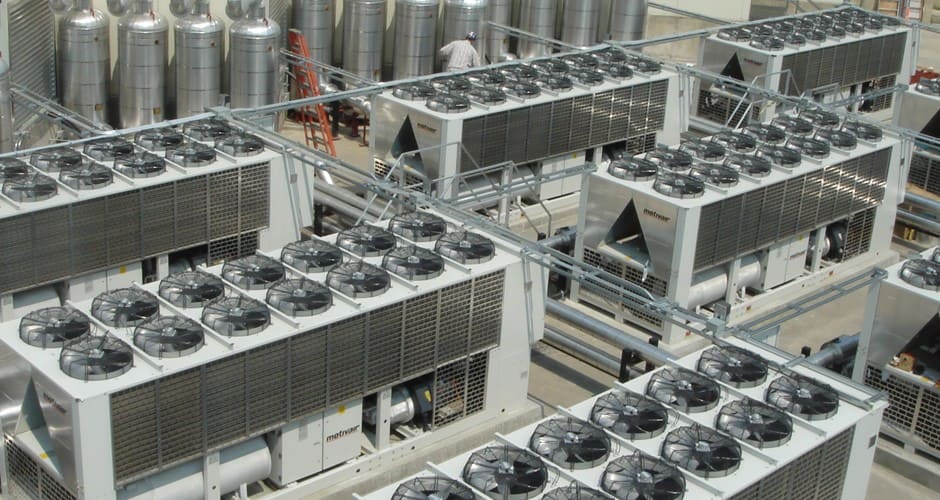 - Чиллер без встроенного конденсатора сжимает хладагент.