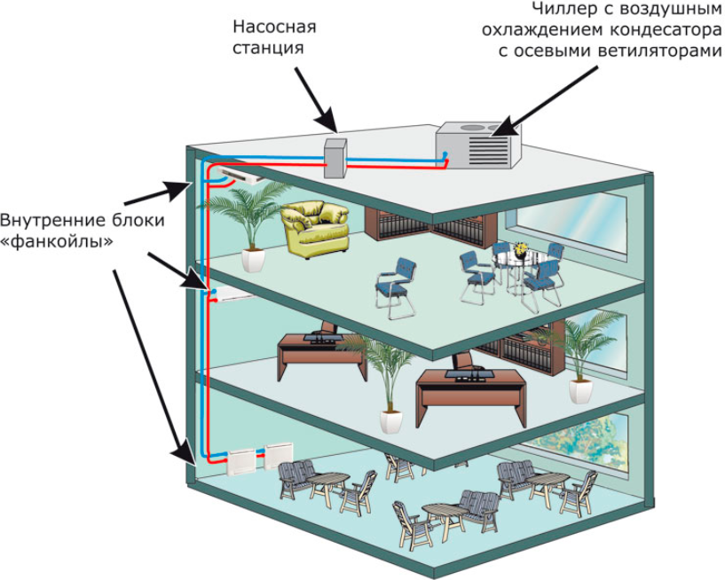 - Требования к шуму строгие — офисы, гостиницы, жилые комплексы.